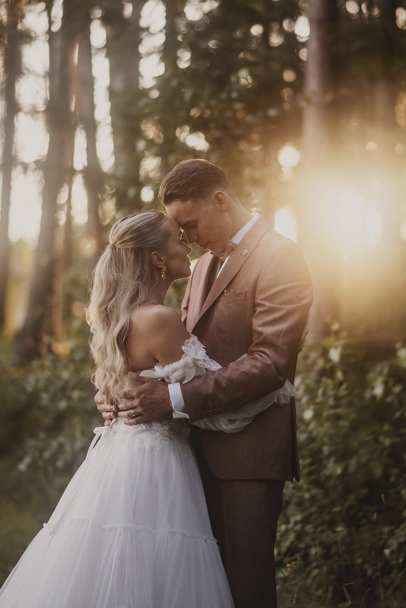 “Vi fotograferade våra bröllopsporträtt tillsammans med Emilia under bröllopsveckan, precis vid solnedgången, och det var det bästa beslutet någonsin. Stämningen var avslappnad och underbar, och Emilia fick oss att känna oss vackra framför kameran. Hela fotograferingen är ett minne som vi alltid kommer bära med oss i hjärtat.
